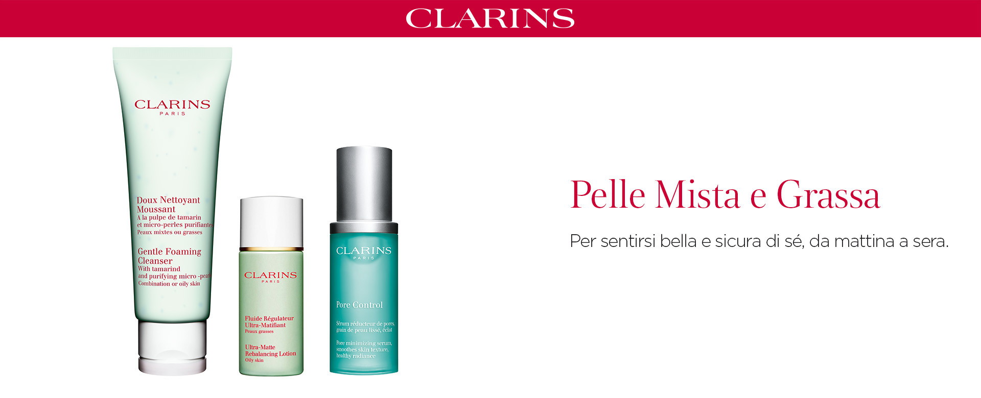 Esperti e pionieri, sin dalle origini. Da oltre 50 anni, i prodotti Clarins segnano la storia della bellezza grazie al loro carattere innovativo e ai loro risultati visibili, scelti da migliaia di donne in tutto il mondo. Ispirandosi ai trattamenti estetici realizzati in istituto, i prodotti Clarins accompagnano le donne durante tutta la loro vita con formule continuamente arricchite in base alle ultime ricerche scientifiche ed alle attese delle consumatrici.